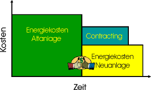 Voraussetzungen für Contracting Die technische Seite ist einfach - wir können sehr genau ermitteln, ob ein Projekt geeignet ist, welche Maßnahmen bei welcher angestrebten Laufzeit durchführbar sind und wie weit über die ebenfalls ins Contracting transferierten Wartungskosten weitere ad hoc - Barvorteile möglich sind (siehe Grafik) Schwieriger ist die kundenbezogene Seite. Bei kleineren Kapitalgesellschaften müssen wir beispielsweise auf Sicherheiten bestehen, da die eingesetzten Geräte nicht einfach entfernt und in anderen Projekten eingesetzt werden können. Bei gemieteten Objekten sind die Regelungen des Mietvertrages sowie der Zeithorizont und vieles mehr zu berücksichtigen. Wir haben auch bei gemieteten Objekten Contracting erfolgreich durchgeführt. Falls Sie Interesse an einem Einspargarantievertrag haben besuchen wir Sie gerne. Für eine Grobanalyse, an der am Ende die Machbarkeitsfrage geklärt ist, berechnen wir nur die Reisespesen. Für eine Feinanalyse, aus der dann auch die konkreten Maßnahmen entnommen werden können, berechnen wir unsere üblichen Beratungssätze nach Aufwand. Bei Zustandekommen eines Contractings können diese Kosten in die Investitionssumme einbezogen und aus den realisierten Einsparungen bezahlt werden. Ein “ja” in der Grobanalyse verpflichtet uns, Ihnen bei der kostenpflichtigen Feinanalyse auch ein contractingfähiges Konzept vorzulegen.