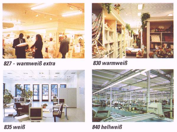Hier ein Vergleich der Anmutungen von gängigen Lichtfarben (835 in Europa nur von GE)