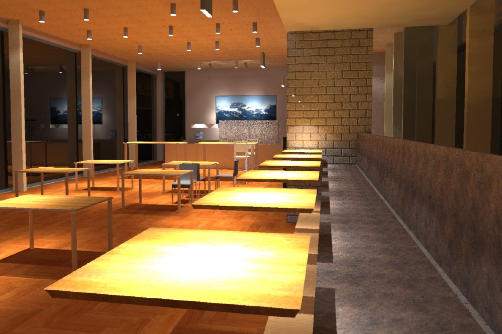 ![]() Gesamtleistung pro Fläche (300.00 m²) 11.73 W/m² - spezifischer Energieaufwand: 1.94 W/m²/100lx - mittlere Beleuchtungsstärke 600 lx 2. Besonders energieeffizientes Lichtkonzept für ein Büro in München:Attach:BüroSTATTAUTOklein.jpg Δ Δ Attach:BüroSTATTAUTO2kl.jpg Δ Δ 3. Extrem wirtschaftliche Beleuchtung im Gastraum (207 m²) eines Cafés in Berchtesgaden ausschließlich mit LED-Leuchtmitteln