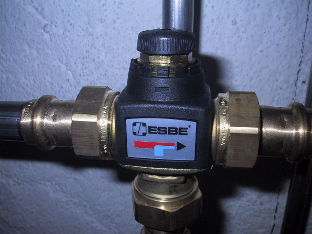 - Als Verbrühschutz in der Trinkwarmwasserleitung ist ein Thermostatmischer Fabrikat ESBE eingebaut: