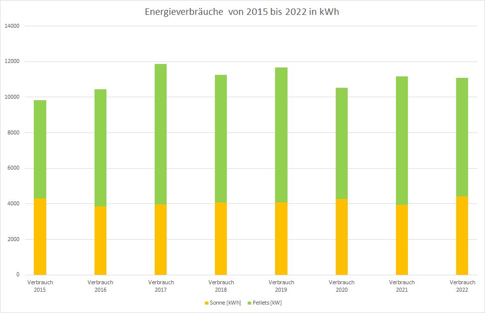 Noch ein Wort zum durchschnittlichen Pelletsverbrauch: Im Mittel der Jahre 2011 bis 2022 liegt der Verbrauch bei