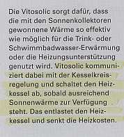 nicht kommuniziert mit der Solaranlage. Dies hätte ich von einem Systemhaus wie Viessmann nicht erwartet. Damit fällt für mich im Nachhinein einer der ganz wesentlichen Entscheidungsgründe für genau diesen Hersteller wieder weg. Hier die Werbeaussage aus dem VITOSOL-Prospekt ("Vitosolic: Das intelligente Energiemanagement"):⇒