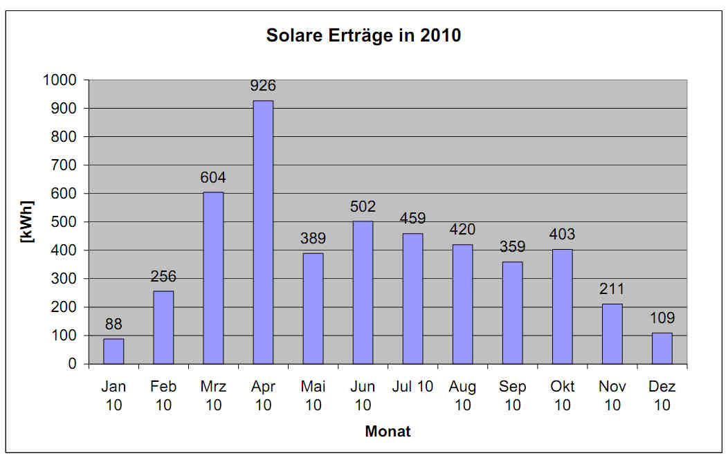 für 2010 ergibt sich eine solare Deckungsrate von 23% und für 2011 sogar 47%! Dies ist deutlich mehr als die Simulationsrechnung erwarten lies.