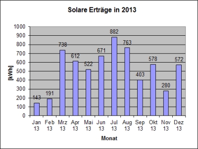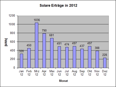 Pro Quadratmeter Kollektorfläche sind dies erstaunliche 640 kWh. Allerdings war 2011 auch überdurchschnittlich sonnig, vor allem im November.
