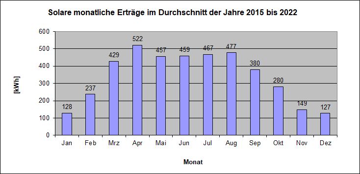 noch eine Erklärung zum besseren Verständnis der Grafiken: trotz gleichen Sonnenstandes sind die Aprilerträge regelmäßig höher als die Septembererträge, weil im April die Außentemperaturen wesentlich niedriger sind als im Herbst, so daß das Wärmeangebot aus dem Pufferspeicher besser genutzt werden kann! Die Erträge resultieren eben nicht nur aus dem Angebot, sondern vor allem auch aus der Nachfrage.