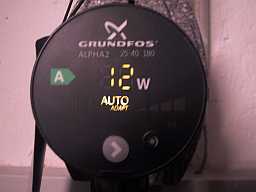 - Ebenfalls begeistert bin ich von der Umwälzpumpe im Heizkreis. Sie nimmt tatsächlich bei nur einem geöffneten Heizkörperventil lediglich 5 Watt auf. Dies ist ein wichtiger Beitrag zum Stromsparen in der Übergangszeit. Lasse ich bei ausgeschaltetem Brenner den Heizkreis rein aus dem Puffer weiterlaufen so steigt die Pumpenleistung erst bei einer Vorlauftemperatur von 40°C an auf die maximale Leistungsaufnahme von 22 Watt (,da dann ja alle Ventile öffnen und der erzeugte Differenzdruck abfällt). Dafür gibt es 5 Sterne! - Mittlerweile lasse ich diese Pumpe ohnehin nur noch fest eingestellt mit 5 Watt Leistung laufen. Eine Komfortminderung konnte ich dadurch nicht feststellen. Mein Stromverbrauch wurde geringer.